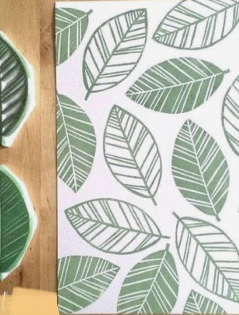Your own carved printing block — design it, carve it, keep it 2 hand-printed greeting cards — using your custom block, ink, and paper.